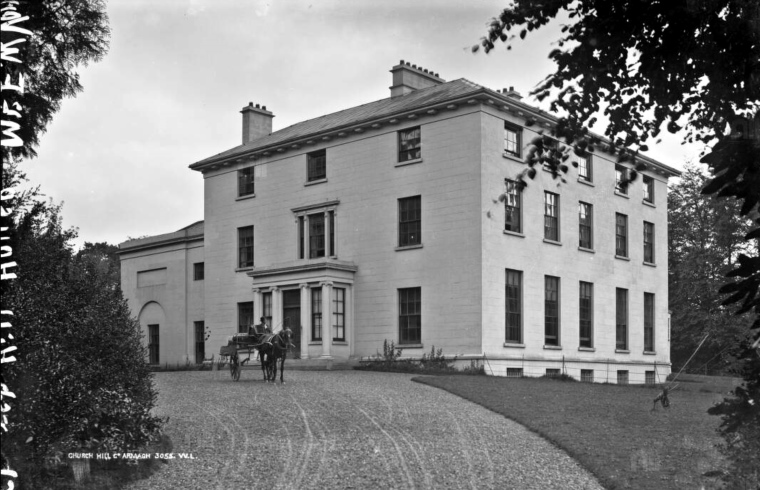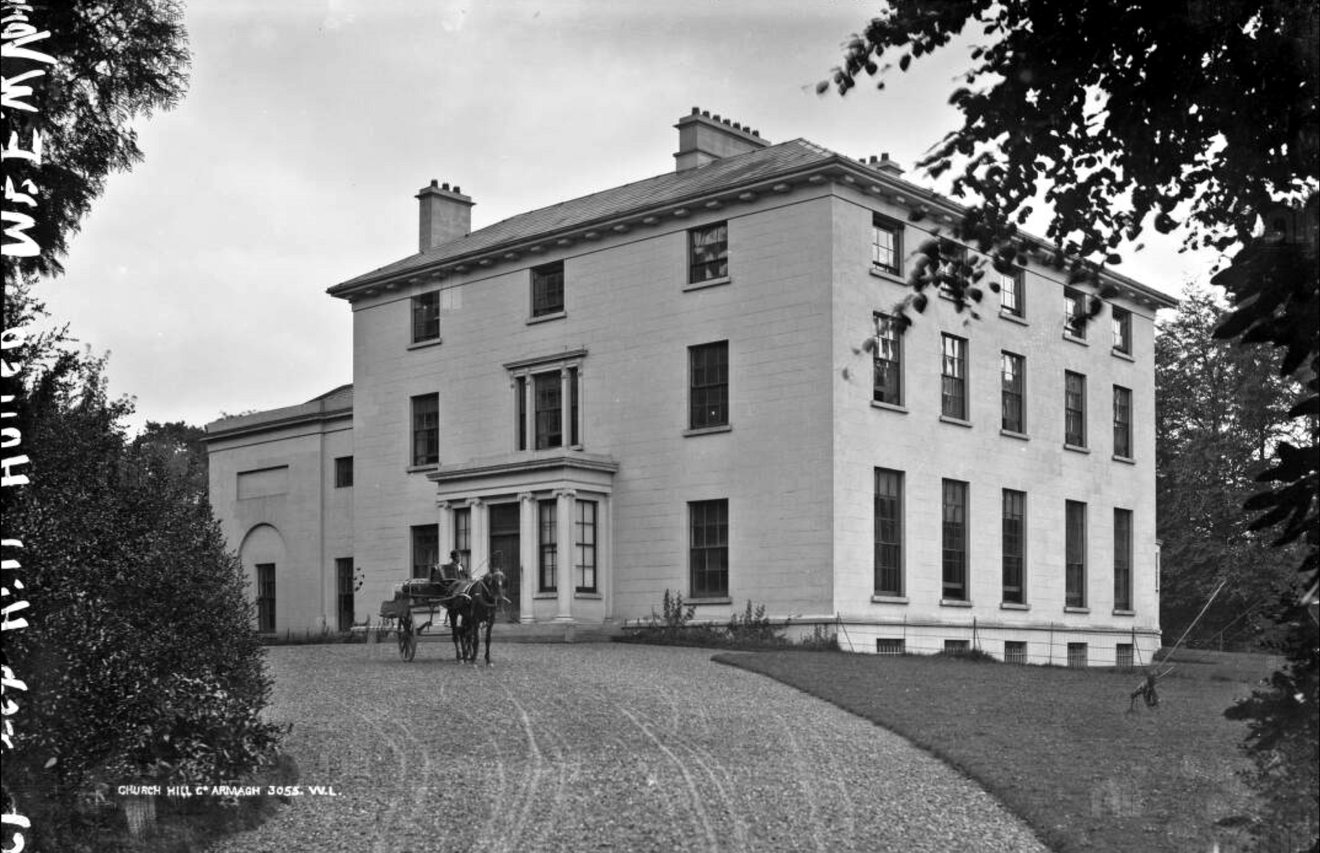 This Henry Verner had a son, Henry, who married an Anne Kerr, and they had a family of five, three sons and two daughters. The youngest son Thomas married Margaret Kerr, an heiress from Co. Meath, in 1749. They lived at Church Hill, may have built the older two-storey house, became large land owners in Armagh and Tyrone, but were childless. For an heir, Thomas looked to his brother David's family.