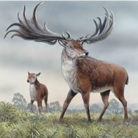 The reason for its disappearance is thought to be either, a virulent disease or the increasing coldness of 8500 BC. From 8500 - 8300 BC a mini ice age enveloped Europe, though not as severe as previous glaciations. It did affect the Irish fauna, possibly cutting off food supply to the Giant Deer and others that migrated in search of food to and from Ireland and Britain.
