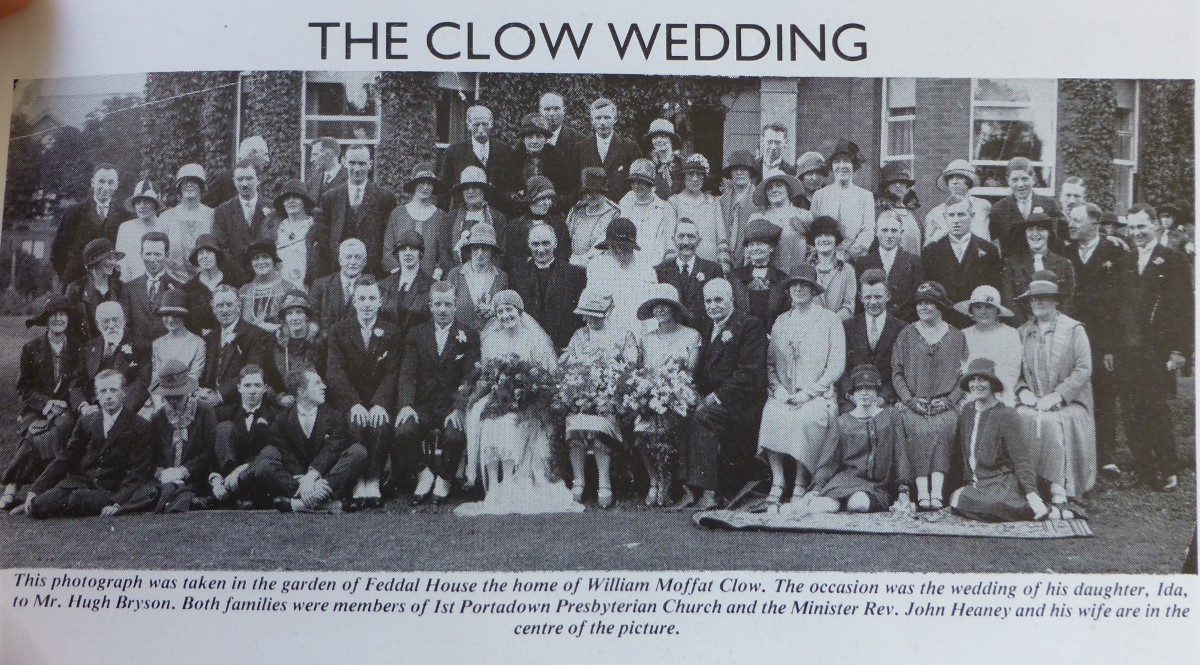 W.M.Clow was born in Glasgow on 13 September 1852, and came to Ulster when he was three years old. He became one of the best known men in the business, social and religious life of Portadown, and across the North of Ireland. He was head of the firm of James Clow & Co., millers in Portadown and Belfast; his residence was at Feddal House on the Gilford Road in Portadown.